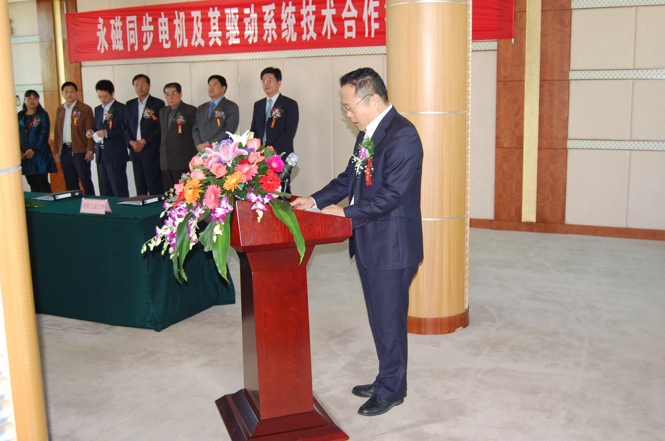2011年10月16日上午,由力久特種電機公司、山東省科學(xué)院自動化研究所、山東大學(xué)電氣工程學(xué)院、沈陽工業(yè)大學(xué)國家稀土永磁電機工程技術(shù)研究中心四方聯(lián)合承擔的永磁同步電機及其驅(qū)動系統(tǒng)技術(shù)合作項目在市國際大酒店二樓會議室舉行簽約儀式。市委副書記、市長高書良出席儀式,市委常委、市政府常務(wù)副市長宋修騫在儀式上致辭。中國工程院院士、國家稀土永磁電機工程中心主任唐任遠先生出席簽約儀式并到公司參觀考察、指導(dǎo)工作!