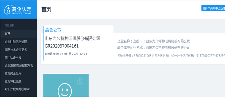 2021年1月15日,全國高新技術企業認定管理工作小組對山東省高新技術企業認定管理機構上報的《關于山東省2020年度第二批高新技術企業備案的請示》做出回復,對山東省上報的3547家企業予以高新技術企業備案,力久電機(山東力久特種電機股份有限公司)赫然在列。