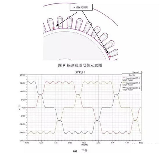文獻[1]提出一種在電機電樞繞組槽內設置三組探測線圈(三組探測線圈在空間位置互差120度)的方式來檢測電機偏心故障的發生。